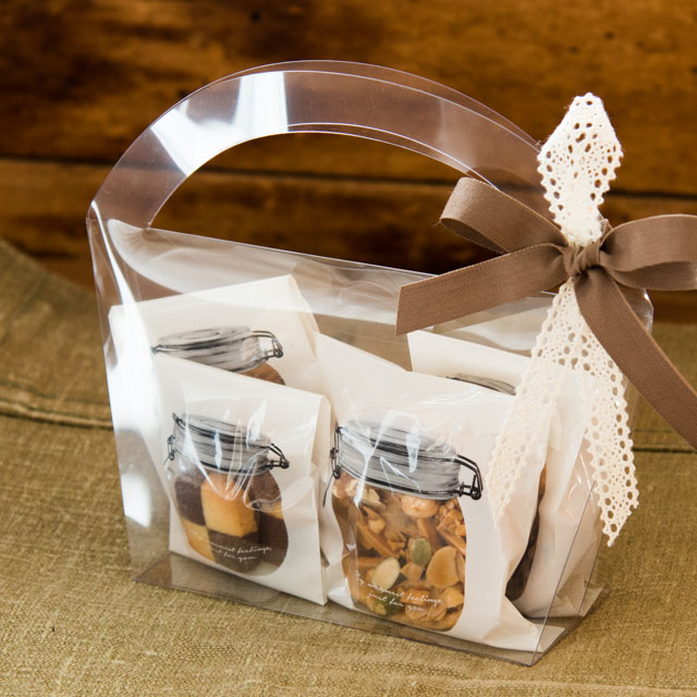 透明無地のハンドル付PETボックスです。中身が綺麗に見えるのでどんなアイテムとも合わせやすく、シールやリボンなどで手軽にオリジナリティのあるギフトが作れます。ゼリーギフトにもおすすめです。