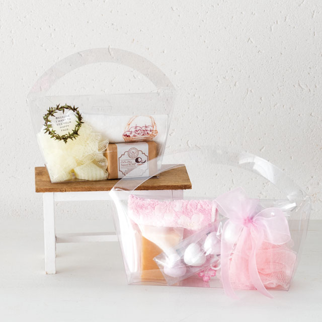 透明無地のハンドル付PETボックスです。中身が綺麗に見えるのでどんなアイテムとも合わせやすく、シールやリボンなどで手軽にオリジナリティのあるギフトが作れます。ゼリーギフトにもおすすめです。(旧品番:M-HPB2リニューアル商品)
