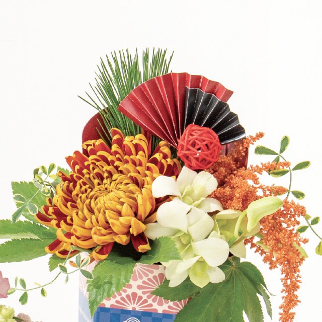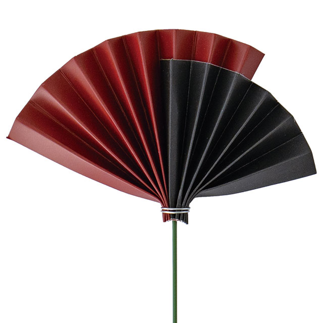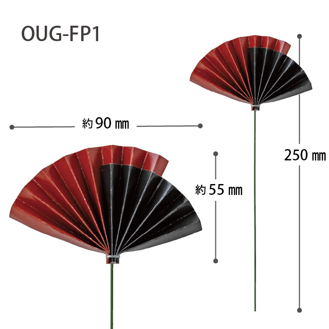 扇モチーフのフラワーピックです。落ち着いた赤と黒のモダンな配色で、お正月・迎春のフラワーアレンジメントに最適なフラワーピックです。