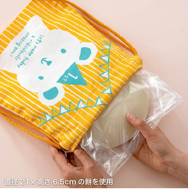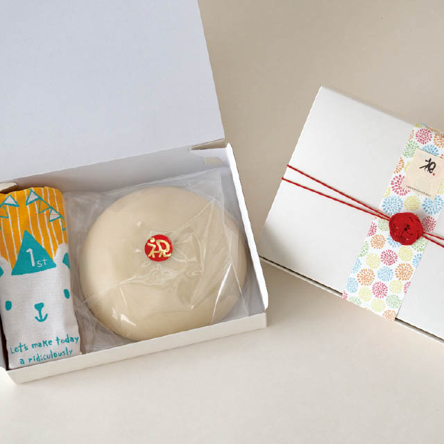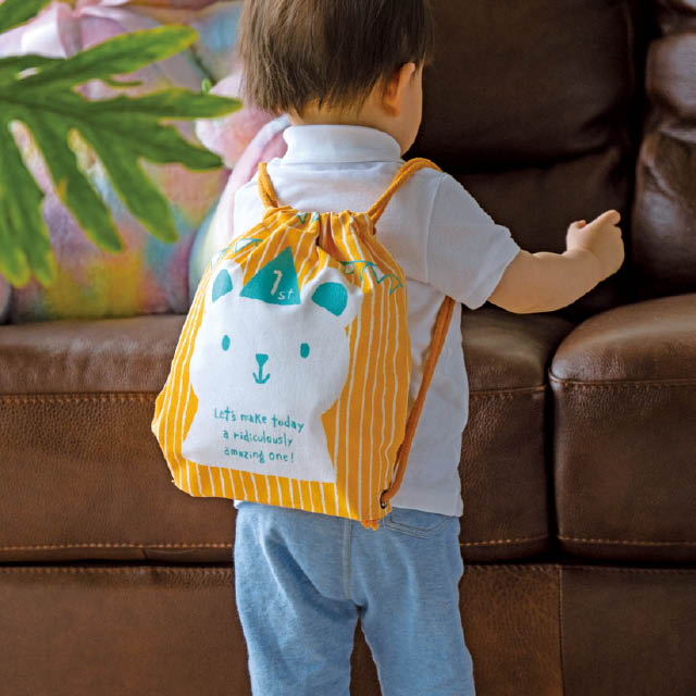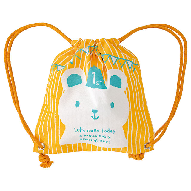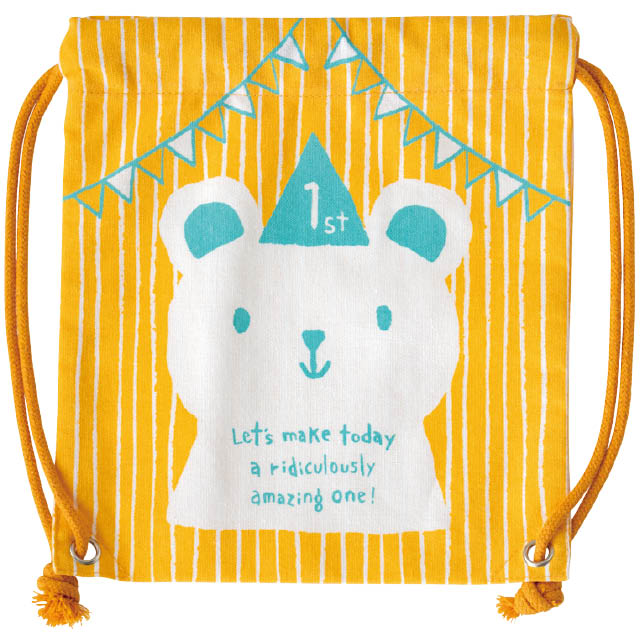 鮮やかなオレンジのストライプと、1stと書かれた帽子のくまさんが可愛いナップサックです。一升餅(一生餅・誕生餅)がちょうど入るサイズ感で、お子様の初誕生祝いの特別なラッピングにぴったり。写真映えもバッチリです!お祝いの後もナップサックとしてリユースしていただけます。大切な1歳の誕生日に可愛く華を添える包装資材です。