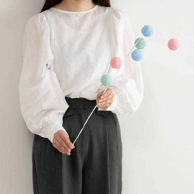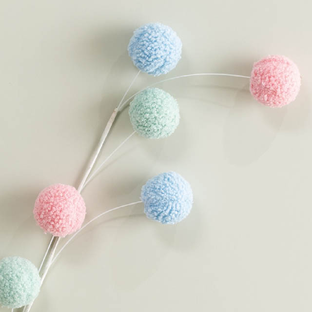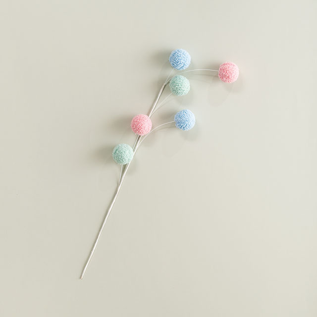 パステルカラーのボールがついたスプレーです。ピンク、ブルー、グリーンの柔らかな色合いが店内を優しく彩り、年中を通して明るく温かみのある雰囲気を演出します。シーズン問わず使いやすいデザインで、花瓶などに挿すだけで飾れる手軽な店舗装飾アイテムです。