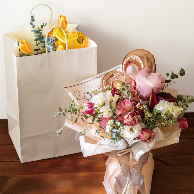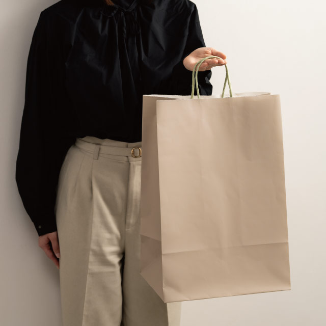 ベージュの無地紙袋です。しっかり自立するハンドルが持ちやすくて便利!マチ広で縦長タイプの紙袋なので、ブーケやアレンジメントはもちろん、雑貨やギフトなど様々なアイテムにおすすめです。やさしい色合いは普段使いにはもちろん、華やかなお祝いの席からお供えの場面まで幅広いシーンで活躍。どんなシーンにも溶け込む、シンプルで使いやすい紙袋です。