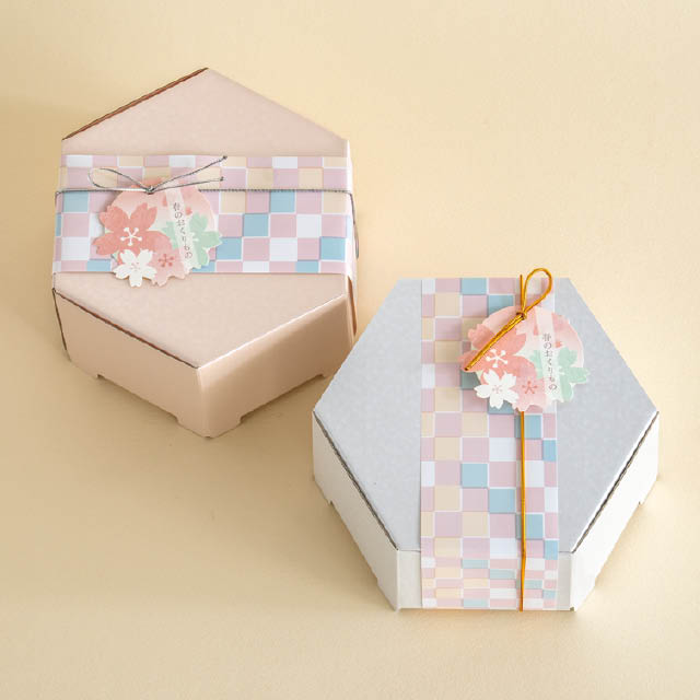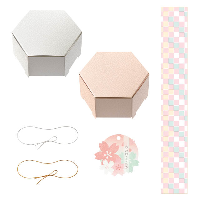 イベント資材は余ると困る!そんなお客様のお声から生まれた、春ギフトにおすすめのラッピング資材セットです。六角ボックスとゴムリボンがそれぞれ2色に、掛け紙とさくらタグがセットになったお得なギフトラッピングです。市松柄の可愛い掛け紙はこのセットだけの限定品!1回の購入で資材が揃う、便利なラッピングセットをぜひお試しください。