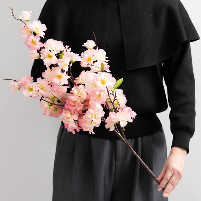 スプレータイプの桜の造花です。W300×H650mmの使いやすいサイズ感で、花器に挿すだけで簡単に華やかなディスプレイができるお手軽さが魅力。棚やコーナー周り、卓上ディスプレイとして、華やかな桜の花で店内を春色に飾ってみませんか?春の店舗装飾にはもちろん、インバウンド向けのディスプレイとしてもおすすめです。