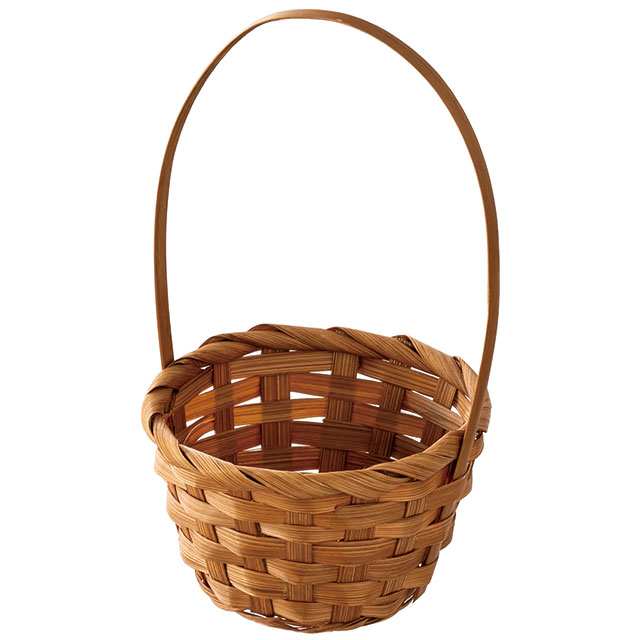 小さめサイズの竹製のバスケットです。自然素材のナチュラルな風合いと大きめのハンドルが可愛らしく、和風・洋風どちらにもお使いいただける便利なバスケットです。焼き菓子4つ程度の小ぶりな大きさで、カジュアルギフトにおすすめです。
