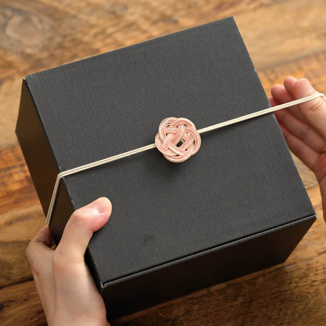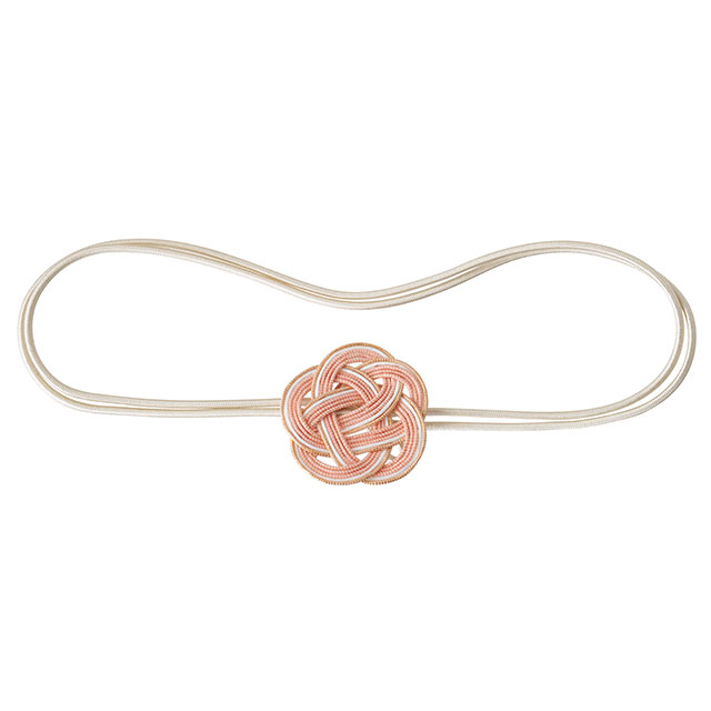 ピンクとゴールドの梅結びの水引がついたゴムタッグです。掛け紙と合わせて箱につけたり、袋の口を留めたり、簡単にかわいいラッピングができます。ラッピングのワンポイントとしても、ご贈答用ギフトとしても活躍する便利なアイテムです。