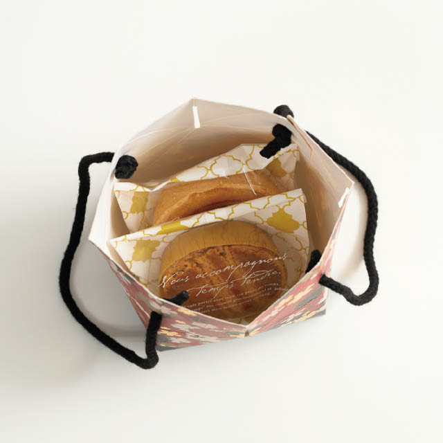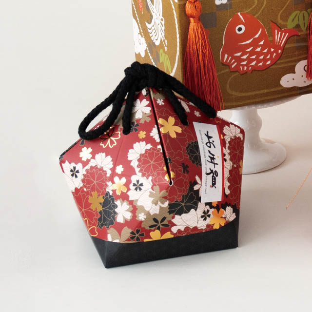 マドレーヌが約2個入るサイズ感で、お正月や七五三など和風のプチギフトにぴったりのギフトボックスです。
