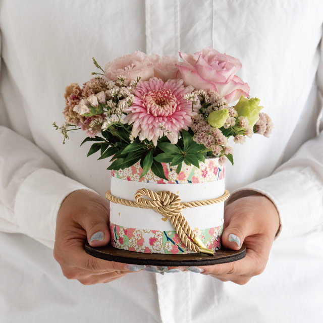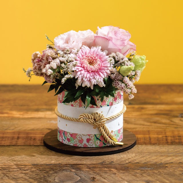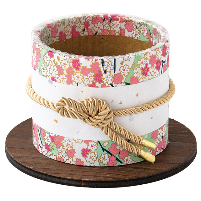 モダンでオシャレな紙管製の和風トレイです。千代紙と組紐が着物のようなイメージに。 底に木の板がついているので安定感もバッチリ!お正月・迎春のフラワーアレンジメントにおすすめの和風トレイです。