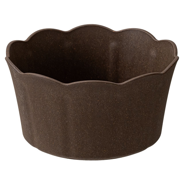 フラワーアレンジメント用のプラポットです。やさしいブラウンと波型デザインで可愛らしい印象のフラワーアレンジメントが完成します。ウッドチップ入りの複合樹脂製で、環境にも配慮しました。デイリーギフトはもちろん、アーパス(フローラルフォーム)が1/3程度が入る定番サイズで、デイリーギフトはもちろん、母の日や迎春、お供えにも幅広く対応できるプラポットです。