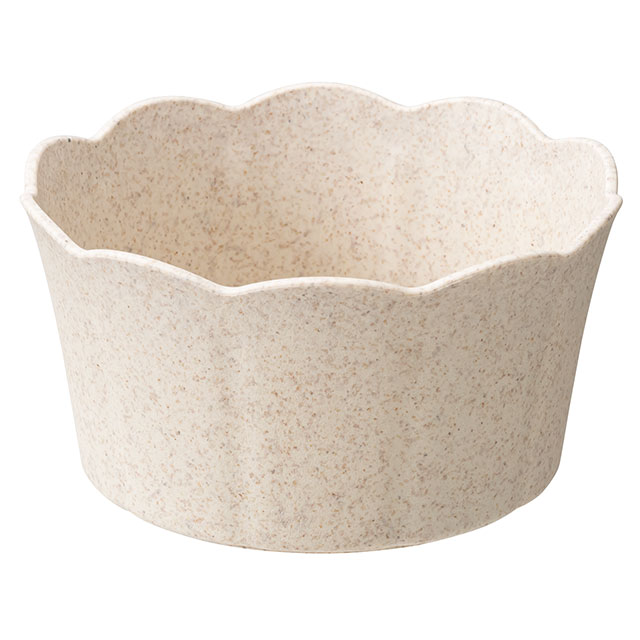 フラワーアレンジメント用のプラポットです。やさしいアイボリーと波型デザインで可愛らしい印象のフラワーアレンジメントが完成します。ウッドチップ入りの複合樹脂製で、環境にも配慮しました。アーパス(フローラルフォーム)が1/3程度が入る定番サイズで、デイリーギフトはもちろん、母の日や迎春、お供えにも幅広く対応できるプラポットです。