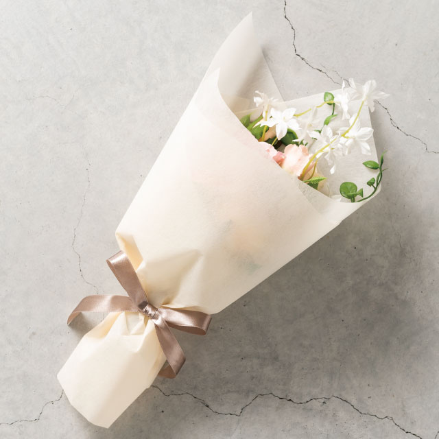 エクリュの不織布ロールです。大きな商品も包める65cm幅、適度な厚みとハリがあり、肌触りの良さが特徴の不織布です。ブーケラッピングや緩衝材などにもオススメです。