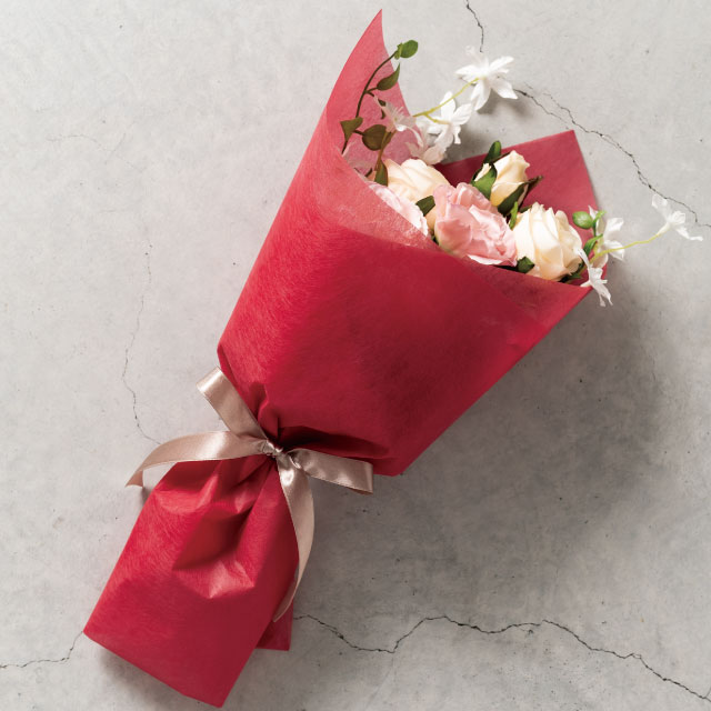 カーマインの不織布ロールです。大きな商品も包める65cm幅、適度な厚みとハリがあり、肌触りの良さが特徴の不織布です。ブーケラッピングや緩衝材などにもオススメです。
