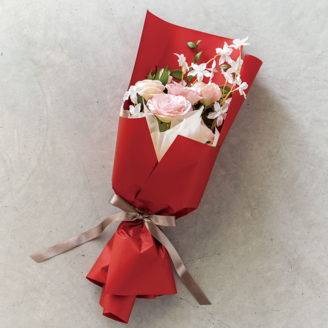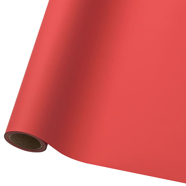 赤のOPPラッピングロールです。パステルからスモーキーまで揃う豊富なカラー展開。使いやすい柔らかさと手触りが特徴で、ブーケを包みやすくロスも少ない50cm幅のラッピングロールです。
