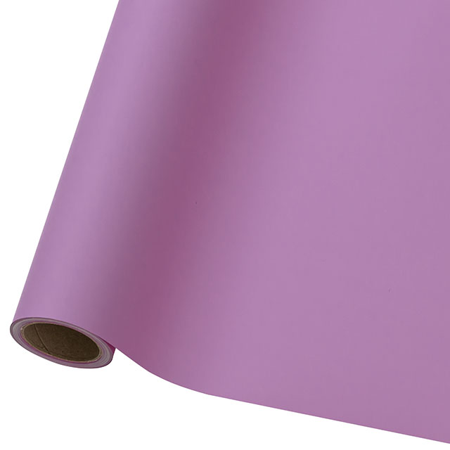 パープルのOPPラッピングロールです。パステルからスモーキーまで揃う豊富なカラー展開。使いやすい柔らかさと手触りが特徴で、ブーケを包みやすくロスも少ない50cm幅のラッピングロールです。