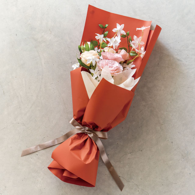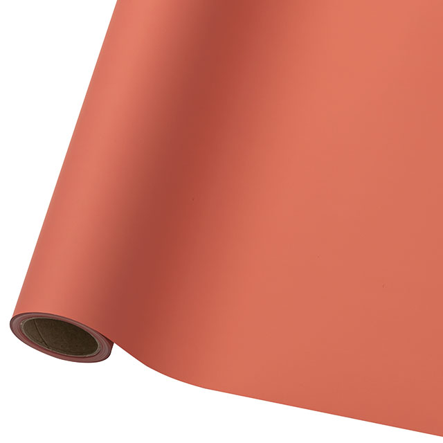 テラコッタのOPPラッピングロールです。パステルからスモーキーまで揃う豊富なカラー展開。使いやすい柔らかさと手触りが特徴で、ブーケを包みやすくロスも少ない50cm幅のラッピングロールです。