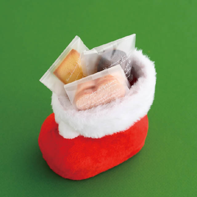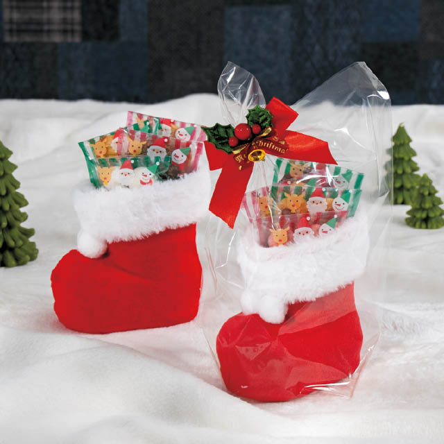クリスマスブーツ型のギフトトレイです。ふわふわの白いファーと鮮やかな赤が目を引き、店頭に飾るだけでクリスマス気分が盛り上がる楽しい売り場に変身します。マドレーヌなら4個ほど入るちょうど良いサイズ感で、お菓子や小物を詰めたプチギフトにもおすすめ。自分へのご褒美や、クリスマスパーティーのテーブルデコレーションとしても活躍します。かわいらしいブーツ型トレイで、贈り物やディスプレイに特別感をプラスしませんか?