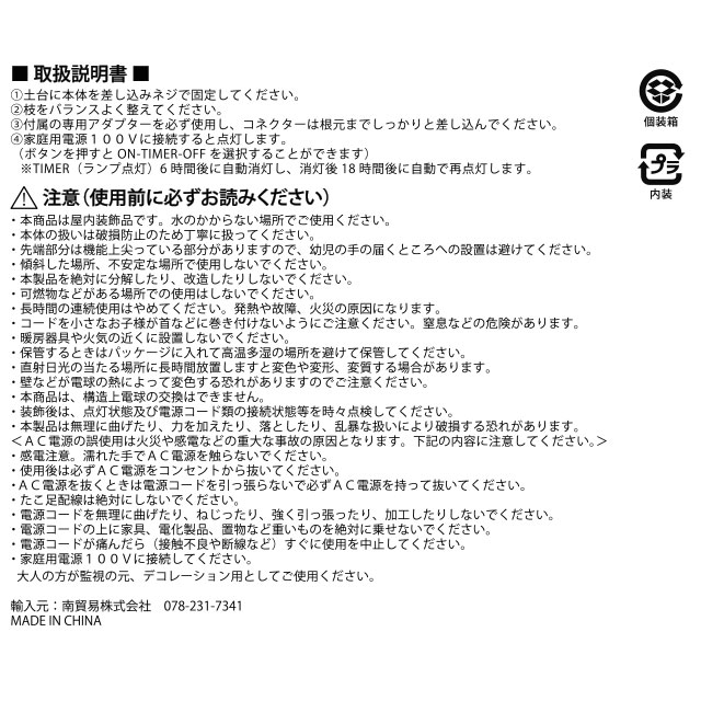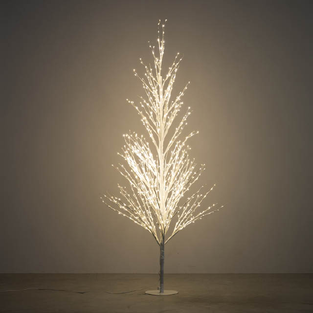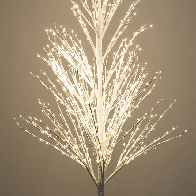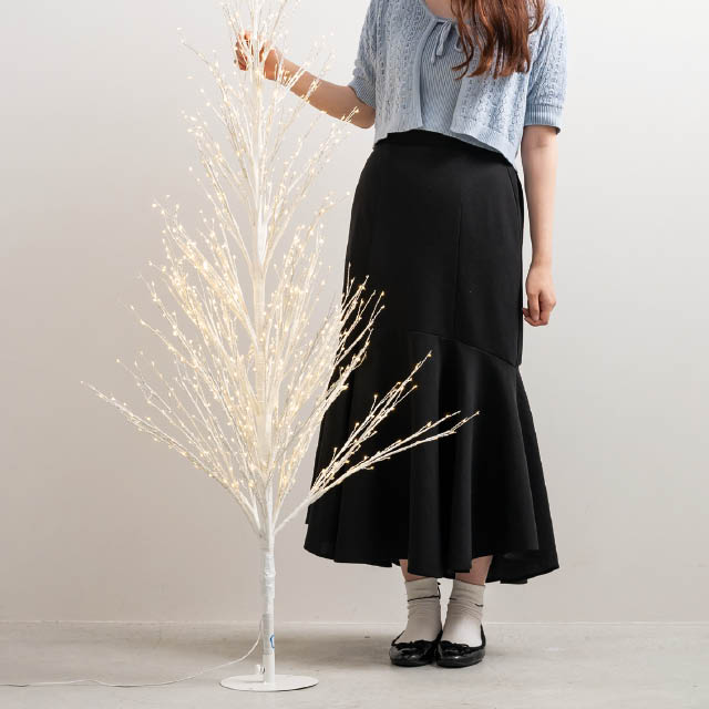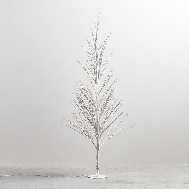LED付きの白いクリスマスツリーです。LEDライトがツリー全体を美しく輝かせ、幻想的な雰囲気を演出します。取付はとても簡単で、枝はお好みの形に広げてアレンジ可能。便利なタイマー機能もついています。シンプルでスタイリッシュなデザインなので、そのままでもおしゃれに使えます。店舗ディスプレイとして、おしゃれなクリスマス演出におすすめのアイテムです。
