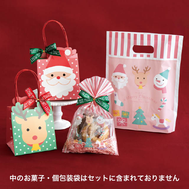 イベント資材は余ると困る!そんなお客様のお声から生まれた、クリスマスギフトにおすすめのラッピング資材セットです。可愛らしいサンタのイラストが人気のチャーミングクリスマスシリーズから、ラッピング用OPP袋とペーパーバッグ、リボンワイヤータイ2色、持ち帰り袋をセットにしたお得なギフトラッピングセットです。1回の購入で資材が揃う、便利なラッピングセットをぜひお試しください。