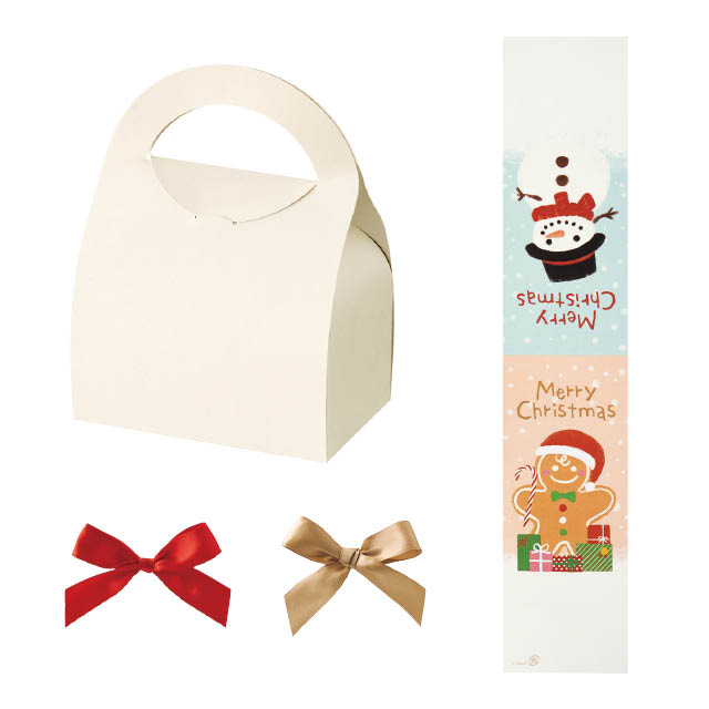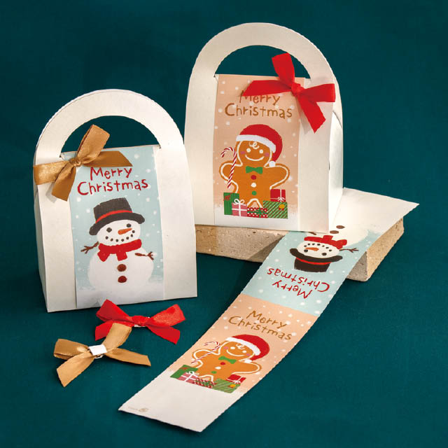 イベント資材は余ると困る!そんなお客様のお声から生まれた、クリスマスギフトにおすすめのラッピング資材セットです。無地のハンドルボックスに、スノーマンとジンジャーマンデザインの掛け紙、リボンシール2色がセットになったお得なギフトラッピングです。可愛らしい掛け紙はこのセットだけの限定品!1回の購入で資材が揃う、便利なラッピングセットをぜひお試しください。