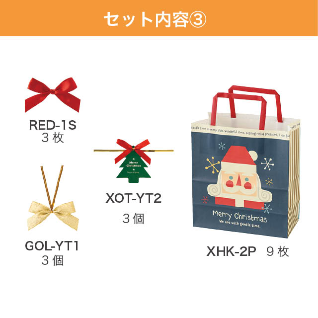 イベント資材は余ると困る!そんなお客様のお声から生まれた、クリスマスギフトにおすすめのラッピング資材セットです。北欧風サンタのジップバッグとペーパーバッグ、ペーパートレイに、リボンワイヤータイ2種、クリスマスモチーフ付ワイタータイ、OPP袋、持ち帰り袋をセットにしたお得なギフトラッピングセットです。1回の購入で資材が揃う、便利なラッピングセットをぜひお試しください。