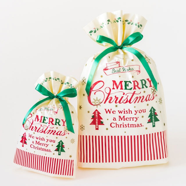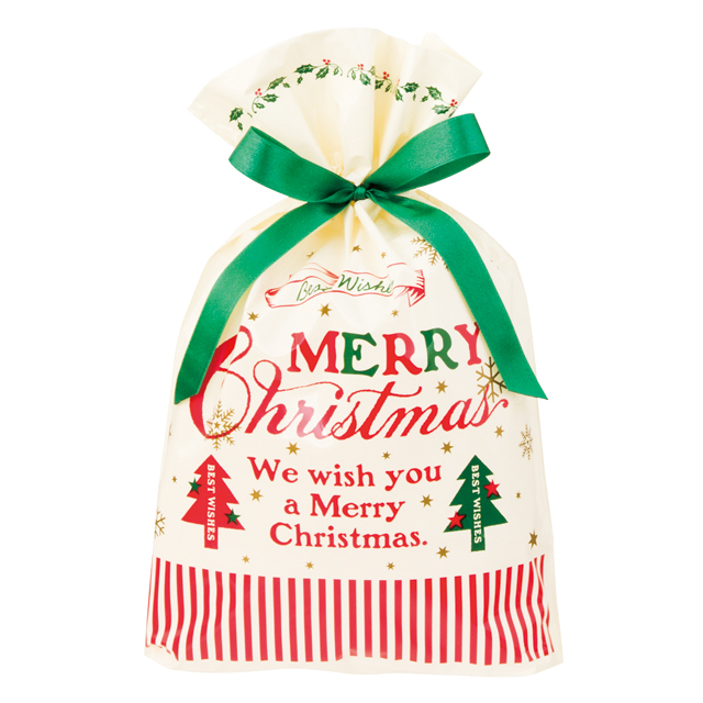 - クラシカルクリスマスリボン付PEギフトバッグ-S