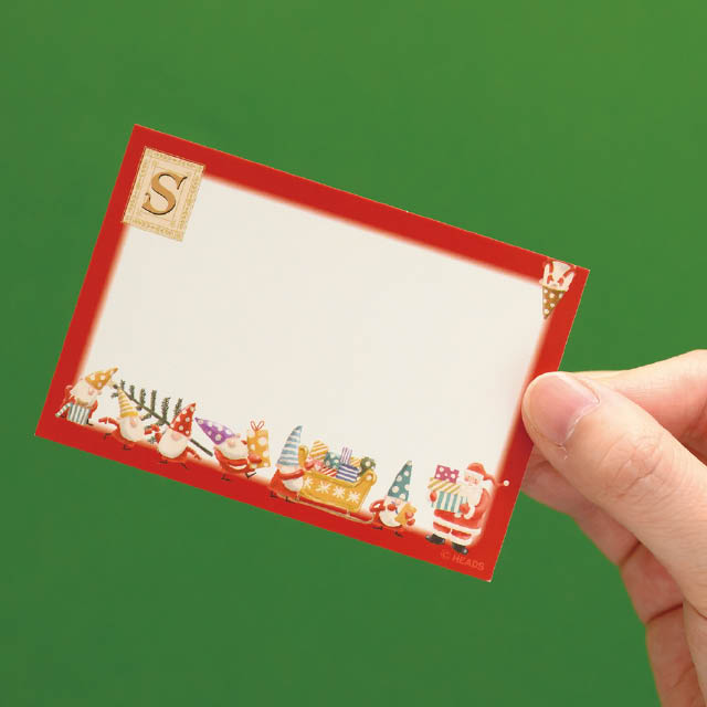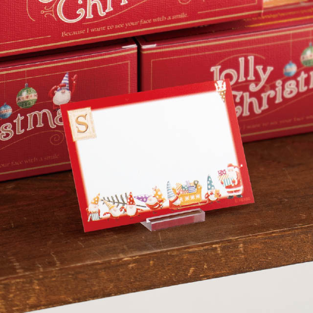 サンタクロースとニッセが描かれたクリスマスカードです。コロンとしたフォルムのイラストが愛らしく、贈り物に添えるメッセージカードとしてはもちろん、プライスカードとしてお店のディスプレイにもおすすめのアイテムです。可愛らしいイラストが売り場のクリスマスムードをさらに盛り上げてくれます。