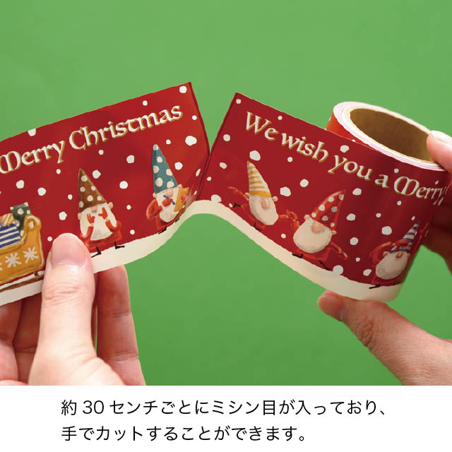 ニッセのイラストと鮮やかな赤が目を惹くクリスマスの棚用ロールポスターです。雪景色の中楽しそうにサンタクロースのお手伝いをするニッセのイラストが愛らしく、クリスマスムードを盛り上げてくれます。裏面はシールとミシン目がが付いているので手でカットして使え、簡単にクリスマスコーナーが作れる便利な時短アイテムです。