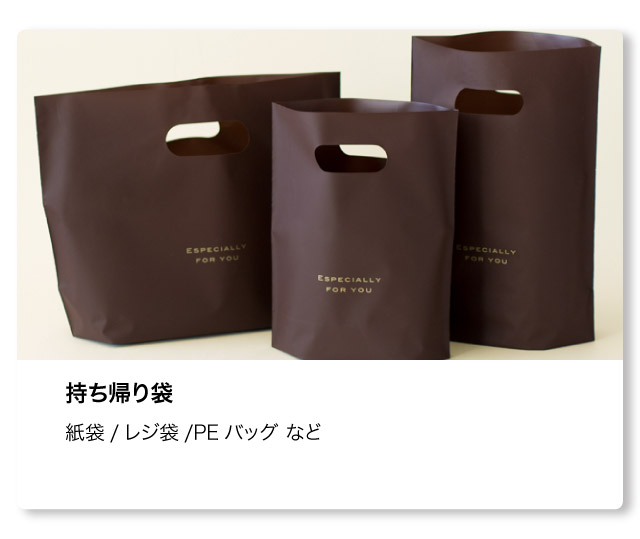 お店のロゴ入りの資材や専用ボックスなど様々なアイテムをお作りいたします。