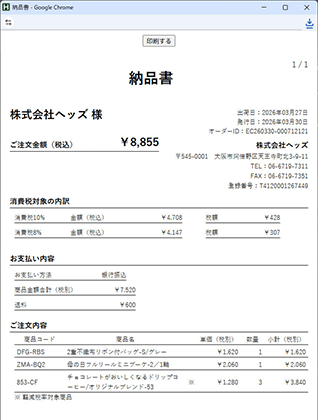 - ■宛名は『ご注文時のご登録会社名・店舗名』となります。
