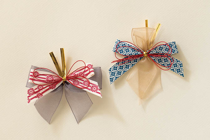 ワイヤータイに付属の水引は、ラッピング時にしっかりと立ち上げて立体感を出すことがポイントです。