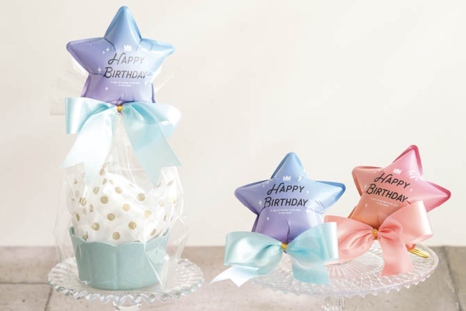 太めのサテンリボンでリボンワイヤータイを作り、バルーンの穴にワイヤータイを通します。バルーン次第でいろんなギフトに変身できます。