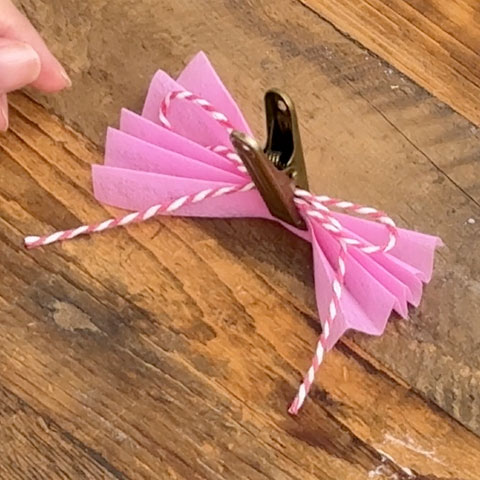 [11]折り目に沿ってじゃばら折りをし、クリップで仮留めします。