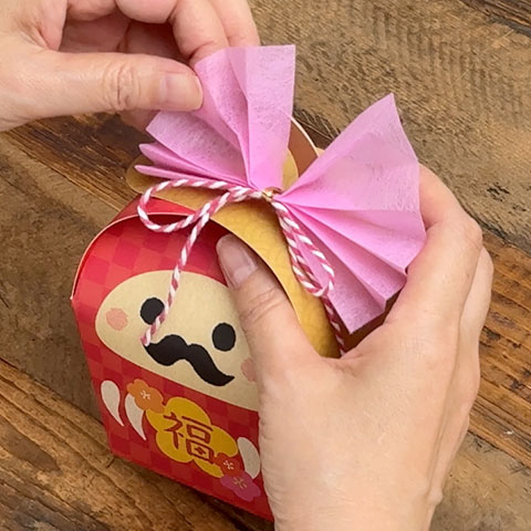 [5][4]をギフトボックスのハンドルに取り付けて、 全体の形を整えたら完成です。