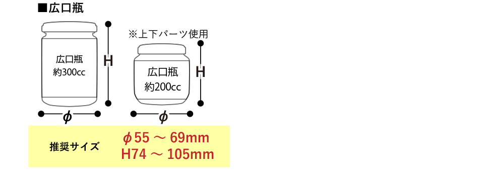- 広口瓶(190cc):φ56.5×H90mm(1本)