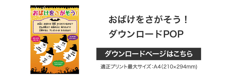おばけのシールを使って滞在時間を長くするしかけを作ってみませんか?お店の中にオバケを隠して何匹いるか言い当てたお客様にはプレゼントを♪専用のダウンロードPOPをご用意しておりますので、簡単に準備ができます!