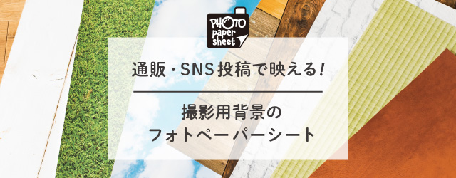 やっぱり1番は用意が楽なこと!例えば本物の木の板を使おうと思うと、重いし並べるのも大変だし、すごく時間がかかるんです。でもフォトペーパーシートはすぐに用意ができるし、商品を並べてみてイメージに合わなくてもまたすぐに別のシートに変えられるので時間をかけずにこだわることができます。本物の木は場所をとるし、大理石は高価で重たいし、芝生は「生えてるとこ何処やっけ?」と、探したりしないといけないので、重宝しています。