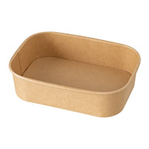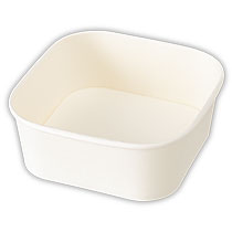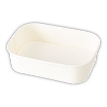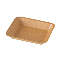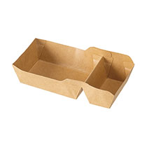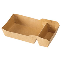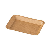 すぐに食べていただきたい食品の販売にぴったりなペーパートレイ。一般的な紙皿やフードパックにくらべると強度があるので手に持ちやすく食べやすさも◎。ソースなどを分けられる仕切り付きのトレイや、フチのある四角いお皿タイプのトレイなどをご用意しています。