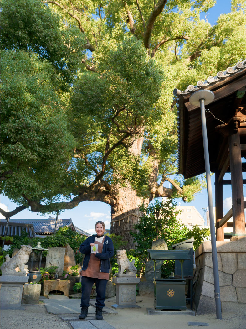 田辺の街で店を開くと決心がついたとき、近所の法楽寺で樹齢800年を超える、くすの木の御神木に出会いました。