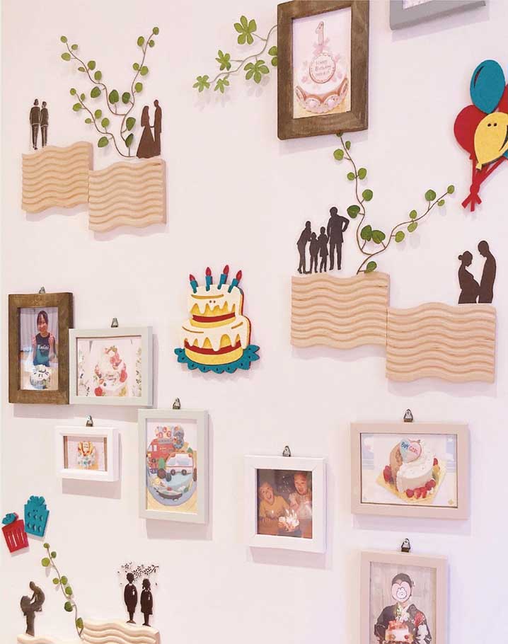 これまでお作りした記念日ケーキの写真を飾った空間で、