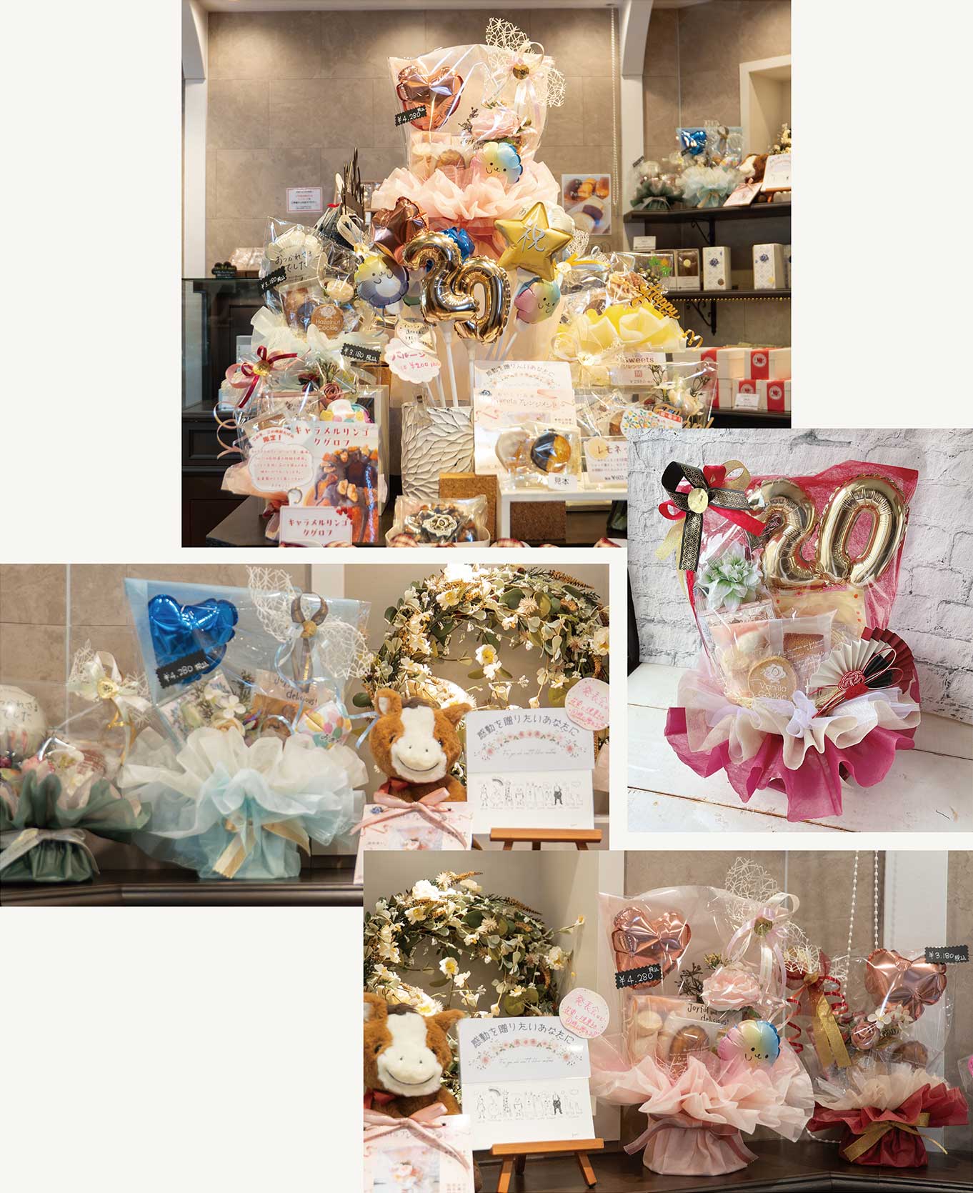 今では誕生日はもちろん、ウェディングや退職、卒業など、幅広い展開になり、お店に並んでいるギフトを見て予約してくれる方が増えました。販売スタッフの手間賃としてラッピング代は少し高めに設定し、高単価商品として販売できるように考えています。