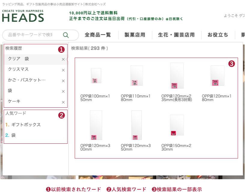 検索窓にカーソルを合わせると、以前検索されたワードと、現在多くの方に検索されている人気ワードが表示されます。