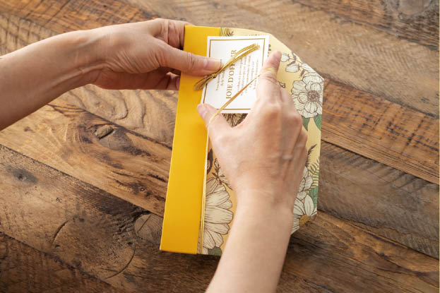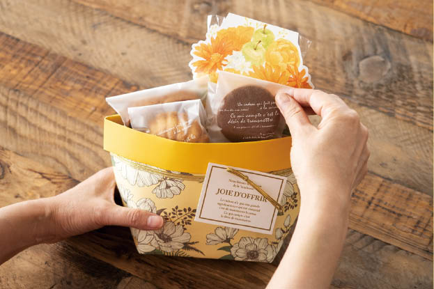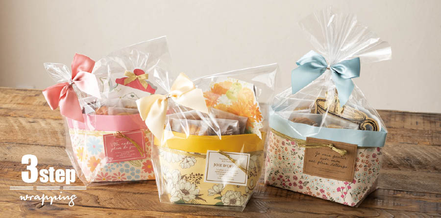 ペーパーバッグをトレイにしたカゴ盛りラッピング