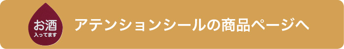 目に入りやすい大きな「お酒」の文字と洋酒をイメージしたワインレッドカラーのシールが