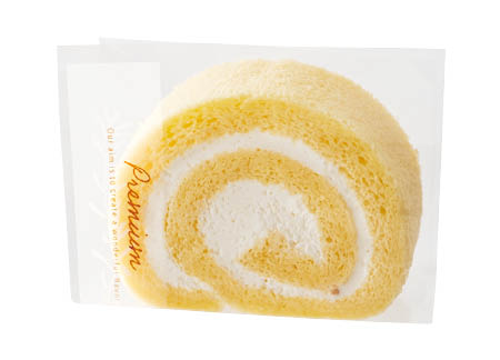 30mmから40mm厚にカットしたロールケーキを包む専用フィルムです。