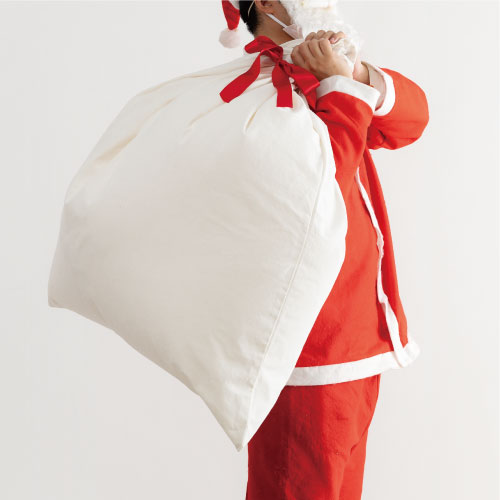 | 大きなリュックサックやクッション、 毛布などを包めるのは 平袋が特にオススメ! クリスマスモチーフの 賑やかで楽しい袋を使って、 ワクワク感をアップ! |