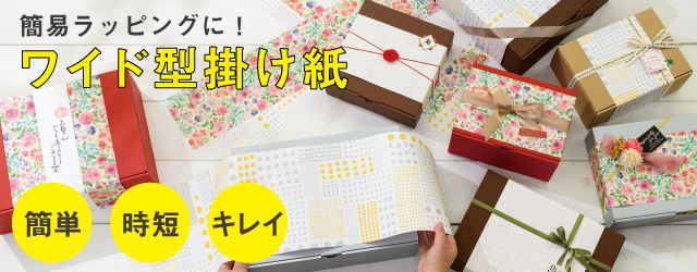 箱を包装紙で包むのは慣れていないと難しく、時間もかかって大変。大きなサイズだとなおさらです!そんなときにおすすめなのが、巻くだけでラッピングができる大きめサイズのワイド型掛け紙です!縦向き、横向きどちらでも使えるのでいろんな箱に合わせられます♪イベント小物を組み合わせるとクリスマス仕様に早変わり!
