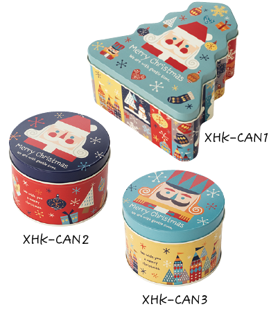 ギフト缶 コーナーで目を引くツリー型と、手頃なサイズの丸型で、人気の缶入りスイーツギフトに! |