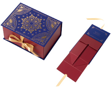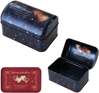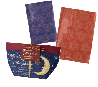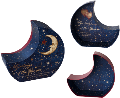 | 三日月型ギフトボックス 店頭で目を引く三日月型ボックス。フタやボックスの中面にも広がる星空が感動を呼びます! |