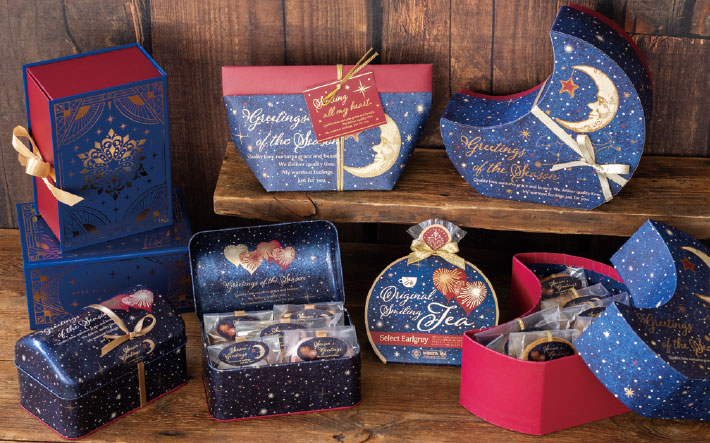 | 冬の澄んだ星空を思わせるデザインや、きらめく雪の結晶のようなデザインが美しいウィンターアイテム。 深みのあるカラーとゴールドの組み合わせが大人のギフトにぴったりです。 | ||||