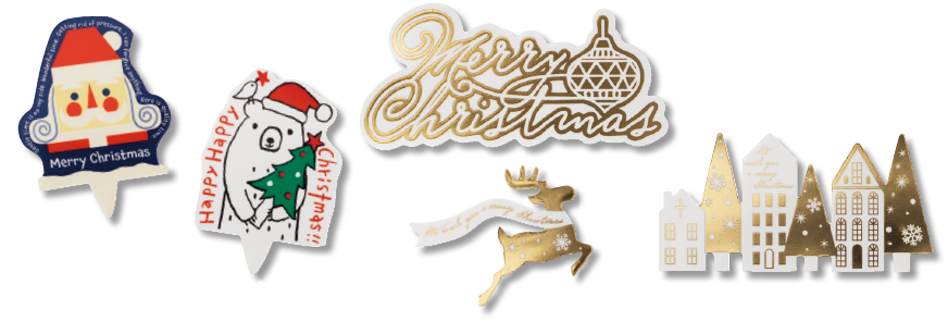 | ケーキピック フルーツやチョコプレート1個分の存在感で、イベントを楽しく盛り上げるクリスマスケーキピック。 |